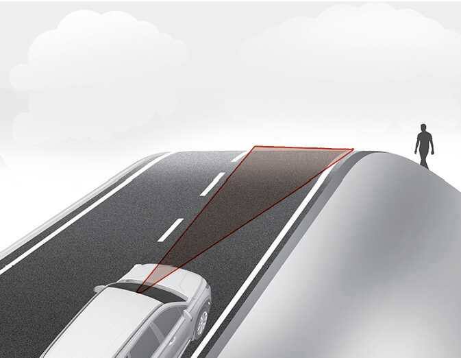 OSP2N052271오르막길이나 내리막길에서는 전방에 있는 차량 및 보행자를 인식하지 못하여 경고 또는 제동을 도와주지 않을 수 있습니다.