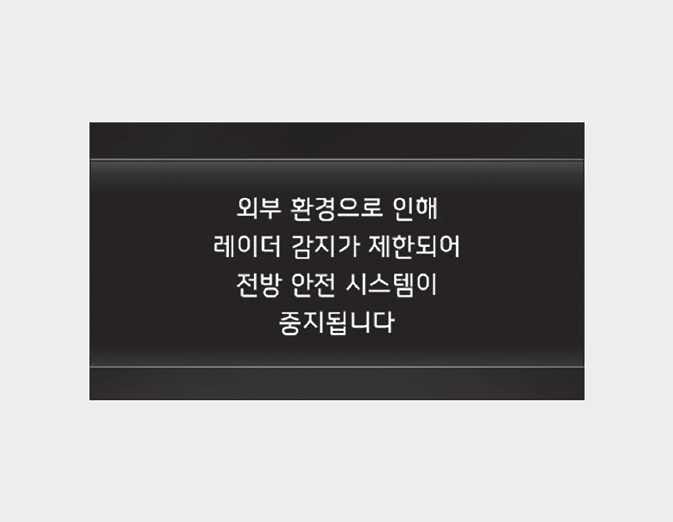 인식 센서 경고문이 표시되지 않거나 경고등이 켜지지 않더라도 전방 충돌방지 보조가 정상 작동하지 않을 수 있습니다.