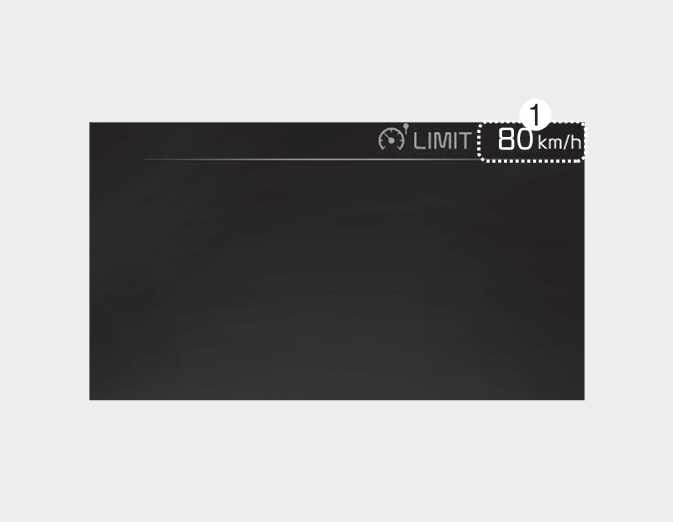 설정한 속도 제한이 계기판에 표시됩니다. 만약, 설정한 속도 이상으로 주행하려면 킥다운이 작동할 때까지 가속 페달을 세게 밟아야 합니다. 주행 속도가 설정한 제한 속도로 내려올 때까지 설정한 속도 제한 표시등(1)이 깜빡이며 일정 시간 경고음이 울립니다.