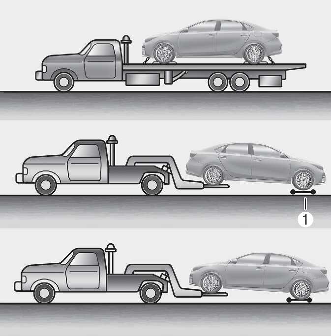 차량 견인 시 반드시 시동을 끄고 견인하십시오. 시동 「ON」 상태에서 차량이 기울어질 경우, 전복으로 감지되어 측면 에어백이 전개될 수 있습니다. (전복 센서 적용시)