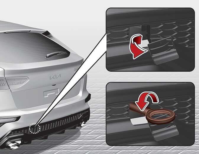 견인 트럭 사용이 불가하여, 견인 후크 사용 시 사용 설명서를 준수하여 사용하십시오. 그렇지 않을 경우, 차량 및 관련 부품이 파손될 수 있습니다.