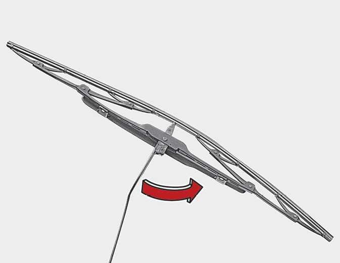 와이퍼 암을 세운 다음 와이퍼 암과 와이퍼 블레이드가 T자가 되도록 하십시오.