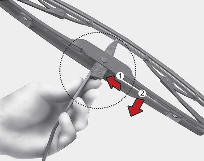 와이퍼 블레이드가 분리된 상태에서 와이퍼 암이 유리창에 닿지 않도록 주의하십시오. 유리창이 파손될 수 있습니다.