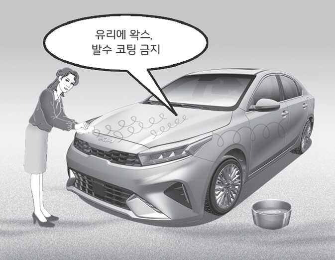 앞유리에 왁스가 묻으면 와이퍼의 손상원인이 될 수 있으므로 주의하십시오.