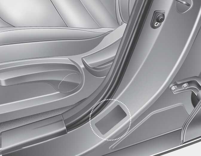 본 차량의 권장 타이어 공기압 정보는 운전석 옆 센터 필러에 부착된 라벨 안에 표기 되어 있습니다