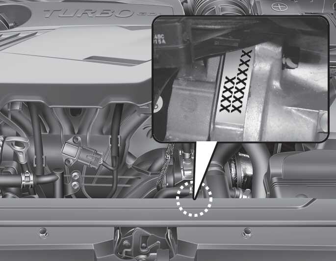 엔진번호 그림 1. 스마트스트림 G1.6 OBD088001 그림 2. (가솔린) 1.6 T-GDi OBD088004L 엔진번호는 차량 앞쪽에서 엔진룸을 바라볼 때 실린더블록 우측 하단에 표기되어 있습니다.