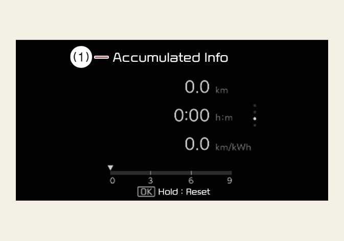 Als het bestuurdersportier geopend wordt na het uitschakelen van het voertuig of het voertuig na 3 minuten ingeschakeld wordt, dan wordt het rij-informatiescherm gereset. |
