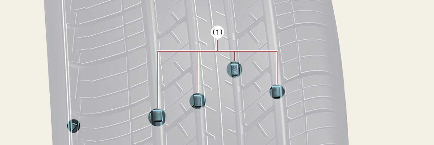 Als de band gelijkmatig afgesleten is, verschijnt de slijtage-indicator als een ononderbroken lijn door het loopvlak.