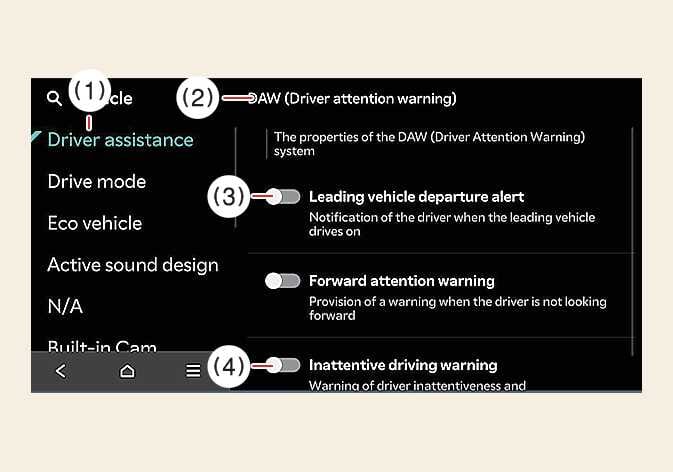 In Regionen, in denen die Warnung unaufmerksame Fahrweise immer aktiviert ist, werden die Einstellungen für die Warnung unaufmerksame Fahrweise nicht angezeigt.