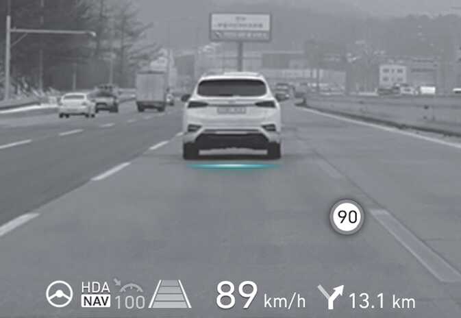 증강현실 헤드업 디스플레이 (사양 적용시) OCV041418L 운전자 전면 유리창에 계기판 및 내비게이션 시스템의 주요 정보를 표시하여 운전자의 시선을 분산시키지 않고 정보를 제공하는 편의 장치입니다.