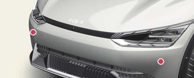 전방의 차량을 인식하기 위해 전방 카메라, 전방 레이더와 전측방 레이더 (사양 적용 시)를 인식 센서로 사용합니다. 인식 센서의 위치는 그림을 참고하십시오.