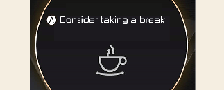 Auf dem LCD-Display des Kombiinstruments erscheint die Warnmeldung. Mit einem Warnton wird dem Fahrer empfohlen, eine Pause zu machen, wenn sein Aufmerksamkeitsniveau unter 1 liegt.