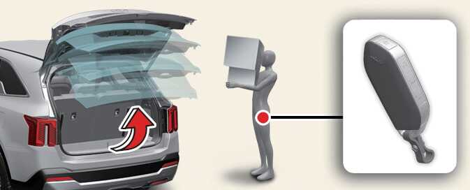 자동 오픈 스마트 테일게이트 시스템 (사양 적용시) OMQ4033469 스마트키 차량에서 간단한 설정으로 테일게이트를 자동으로 열리도록 하는 장치로 양손에 짐을 휴대한 경우 편리하게 이용할 수 있습니다.