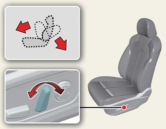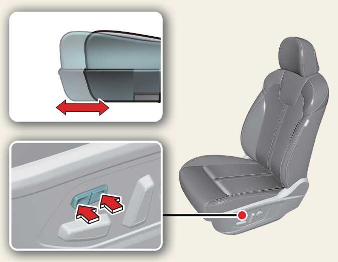 조절 스위치를 앞이나 뒤로 움직이면 좌석이 앞이나 뒤로 이동합니다. 원하는 위치에서 손을 떼십시오.
