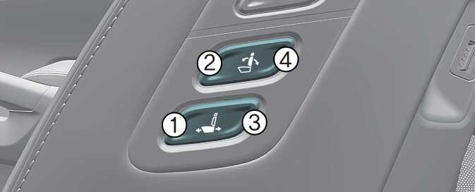 또한, 조절 스위치의 윗부분(3)을 누르면 등받이 허리지지대가 위로 이동하고, 스위치의 아랫부분(4)을 누르면 허리지지대가 아래로 이동합니다.