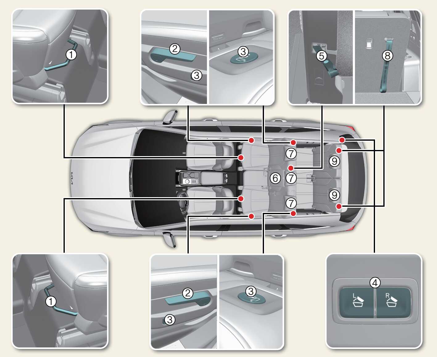 좌석 이동 시 보이게 되는 레일 부분 또는 좌석 고정 장치에 신체가 다치지 않게 조심하십시오. 특히 어린이나 유아들이 다치지 않도록 주의하십시오.