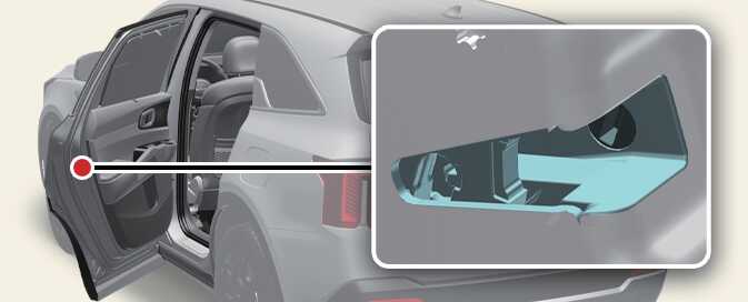 비상시(배터리 방전 등) 마이너스(-) 드라이버와 같이 길고 납작한 물체를 사용하여 수동으로 도어를 잠글 수 있습니다.