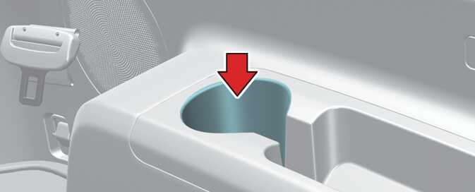 앞(또는 중앙) 좌석의 컵 홀더에 음료수와 같은 액체가 담긴 컵이나 캔 등을 놓아두면 급제동 시 전기 장치에 액체가 유입되어 전기적 장애가 발생할 수 있으므로 반드시 뚜껑을 닫아 놓으십시오.