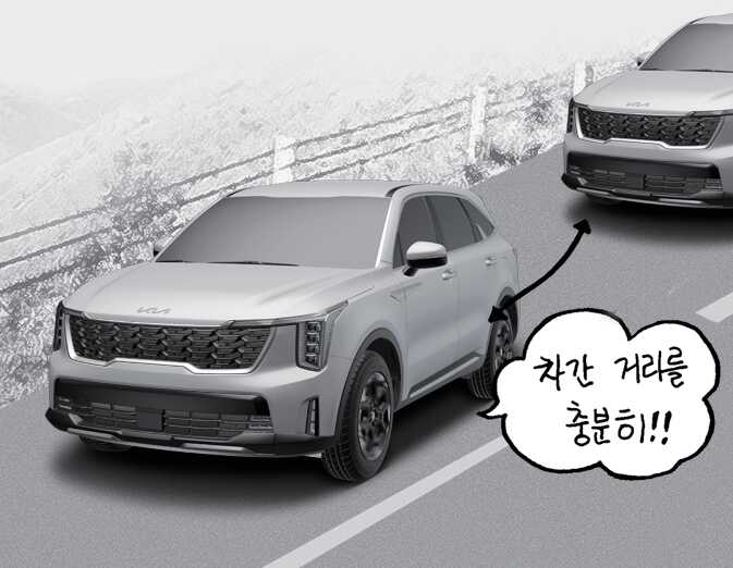 미끄러지기 쉬운 노면에서는 충분한 차간거리를 유지하십시오.