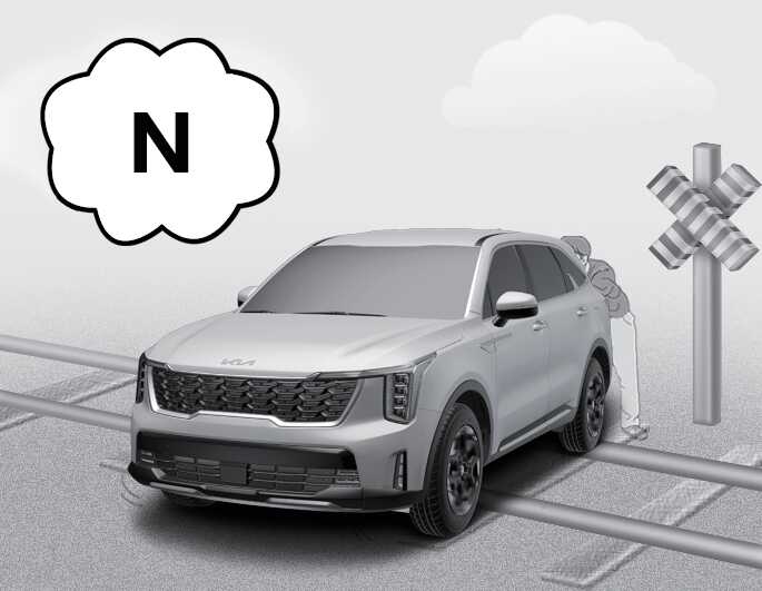 교차로나 건널목의 한가운데에서 시동이 꺼졌을 때는 변속 위치를 「N」(중립)에 둔 후 주위의 가까운 사람들에게 도움을 받아 차를 밀어내어 안전한 장소까지 이동하십시오.