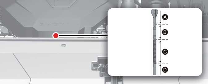 OMQ4073004 - 오일량이 D구간에 있다면 엔진 오일 주입구를 열고 C구간 상위까지 오일을 보충한 후, 오일량이 규정량에 속하는지 레벨 게이지로 다시 확인하십시오.