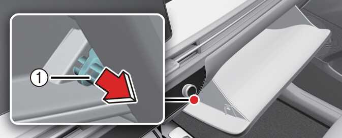 글로브박스를 열고, 오른쪽 옆면의 지지대(1)를 분리하십시오.