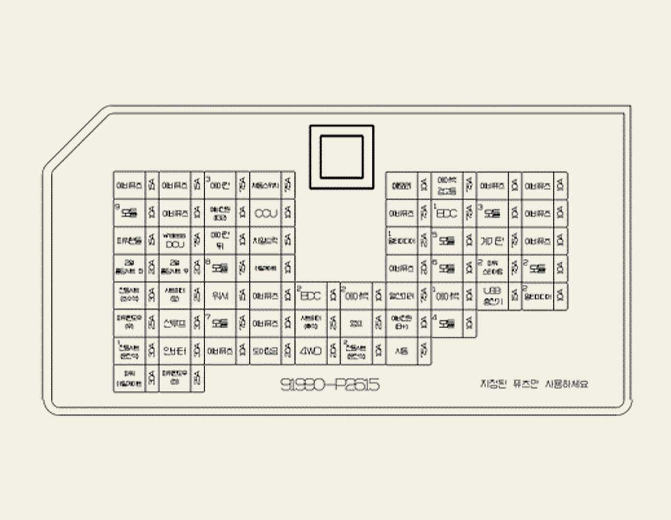 엔진룸 퓨즈 박스 내 이름없는 공란 퓨즈는 예비 퓨즈가 아니므로 임의로 빼지 마십시오. 임의로 뺄 경우 해당 시스템이 작동하지 않을 수 있습니다.