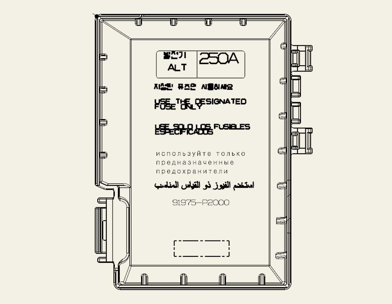 퓨즈의 용량 및 명칭은 차량에 따라 다를 수 있으므로 퓨즈/릴레이 박스 커버 안쪽에 부착되어 있는 퓨즈 라벨을 참고하십시오.