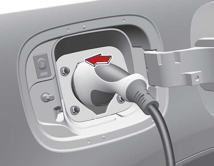 When the charging connector is plugged into the charging inlet, the connector lock timing varies with the modes selected by the user settings menu or the infotainment screen menu.