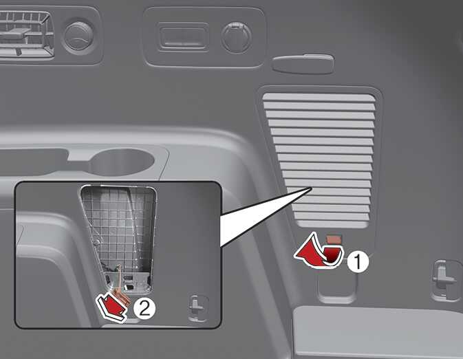 If the charging connector does not disconnect due to battery discharge and/or failure of the electric system, open the cover (1) on the right side of the luggage room and slightly pull the emergency cable (2). The charging connector will then disconnect.