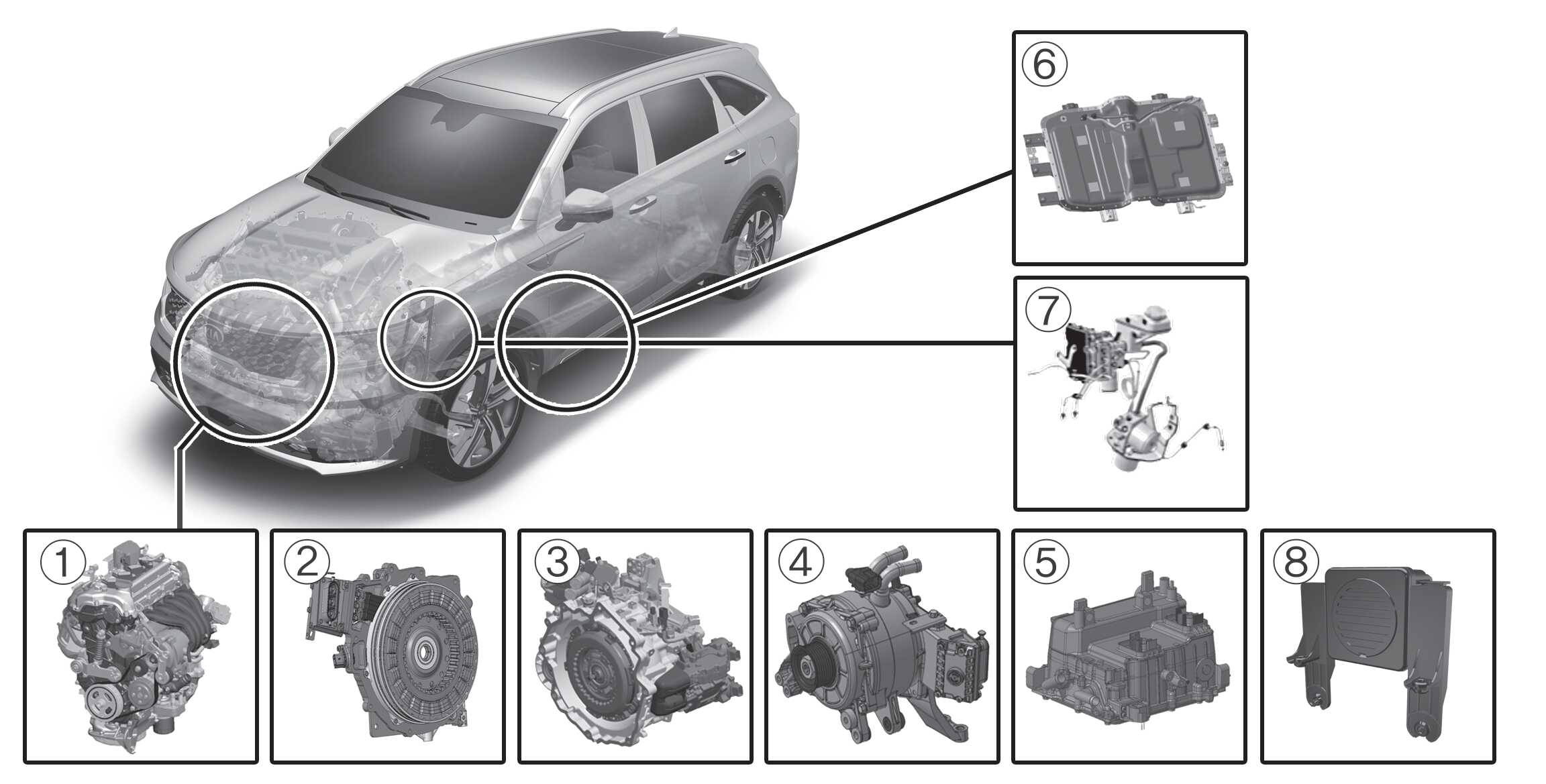 Your vehicle is equipped with orange colored insulation and covers over the high voltage components to protect people from electric shock. High voltage warning labels are attached to some system components as additional warnings. Have your vehicle serviced by an authorized Kia dealer.