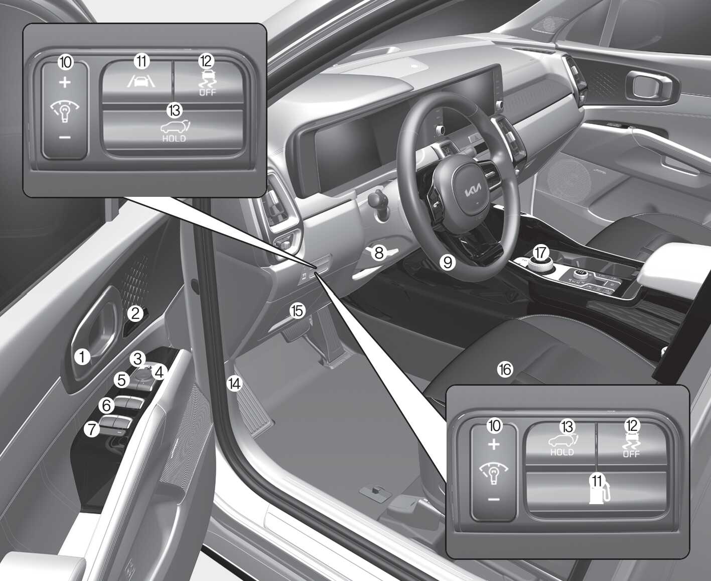 Fuel door open button Opening the fuel filler door (Plug-in hybrid vehicle)