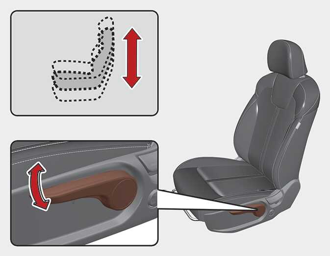 To change the height of the seat cushion, push the lever upwards or downwards.