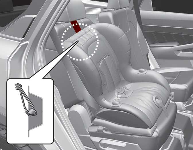 Connect the top-tether to the top-tether anchorage, then tighten the top-tether according to the instructions of your Child Restraint System's manufacturer to firmly attach the Child Restraint System to the seat.