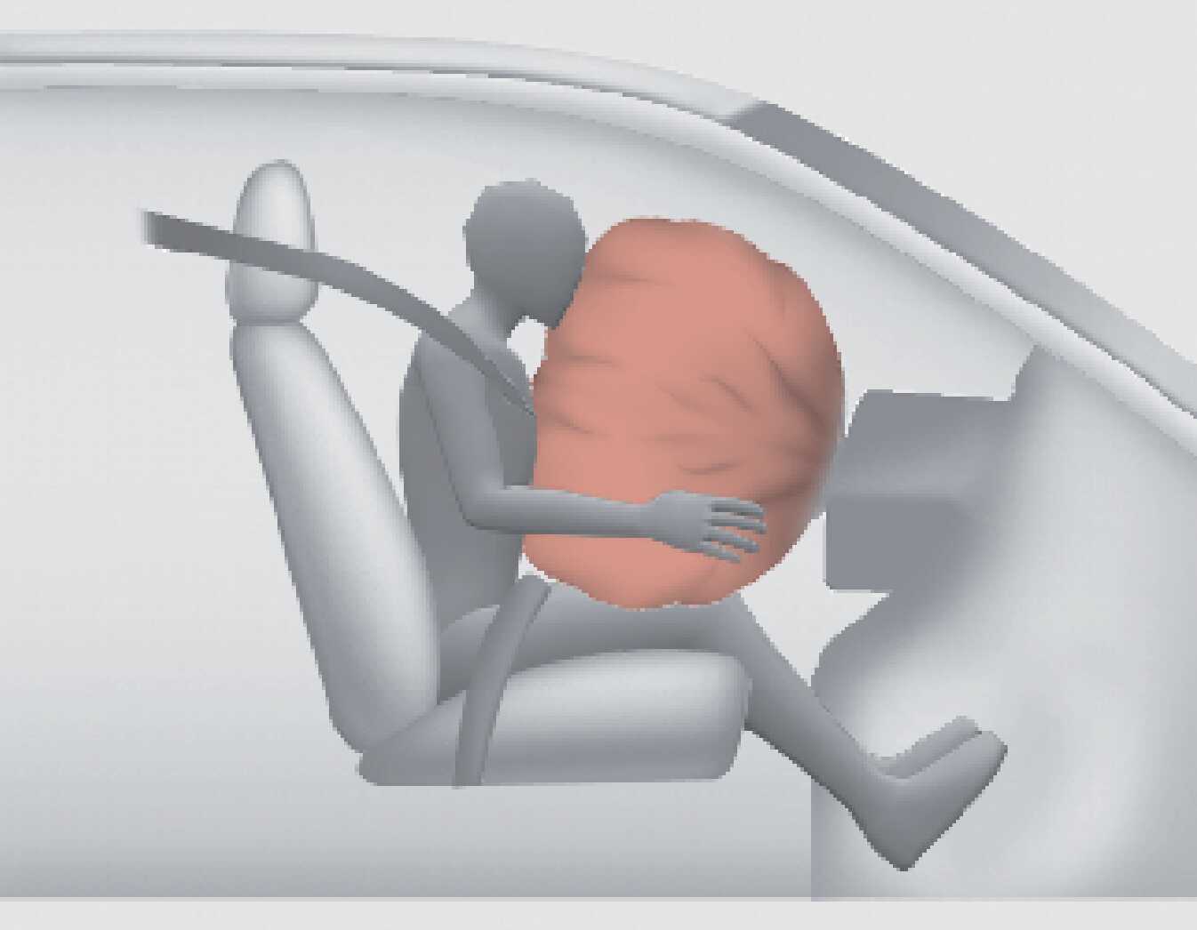 A fully inflated air bag, in combination with a properly worn seat belt, slows the driver's or the passenger's forward motion, reducing the risk of head and chest injury.