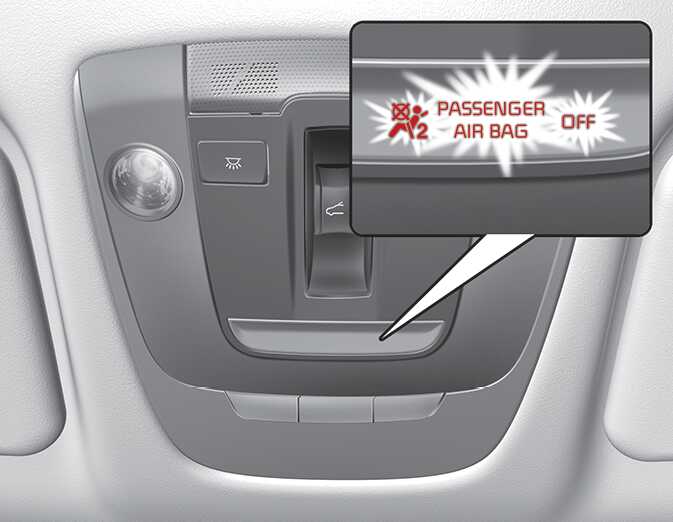 ) indicator on the overhead console. This system detects the conditions 1~4 in the following table and activates or deactivates the front passenger air bag based on these conditions.