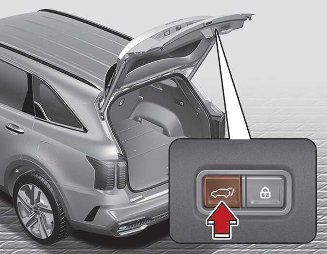 Press the power liftgate open/close button. The liftgate opens or closes with a warning sound.