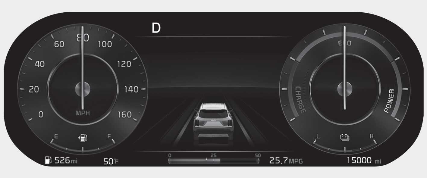 Type A is the basic theme of the full LCD type cluster and provides different graphic styles depending on drive mode.