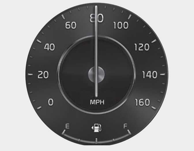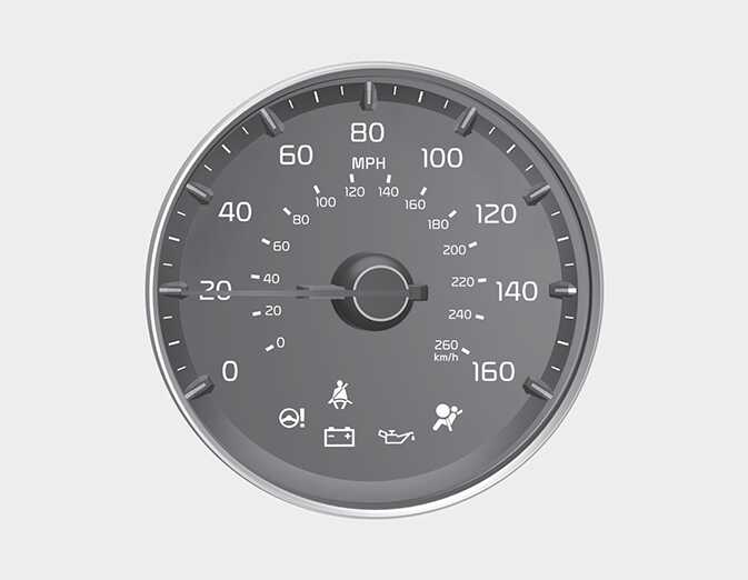 The speedometer indicates the speed of the vehicle and is calibrated in miles per hour (mph) and kilometers per hour (km/h).