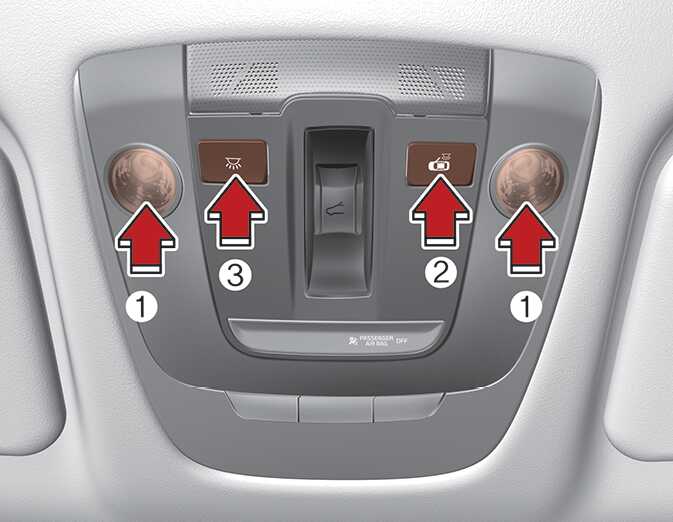 (3): Press this switch to turn the front and rear room lamps on and off.