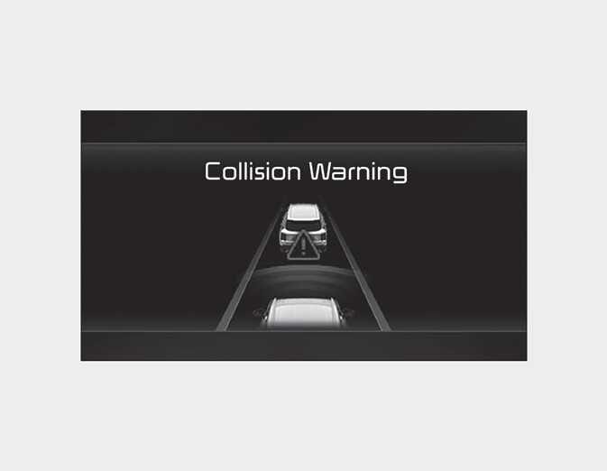 To warn the driver of a collision, the 'Collision Warning' warning message will appear on the cluster, an audible warning will sound and the steering wheel will vibrate.