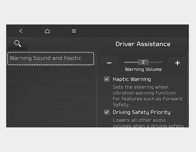 Ensure that Warning Sound and Haptic you have set may apply to the Warning volume of other Driver Assistance systems.