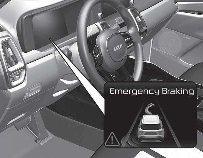 For your safety, the driver should depress the brake pedal immediately and check the surroundings.