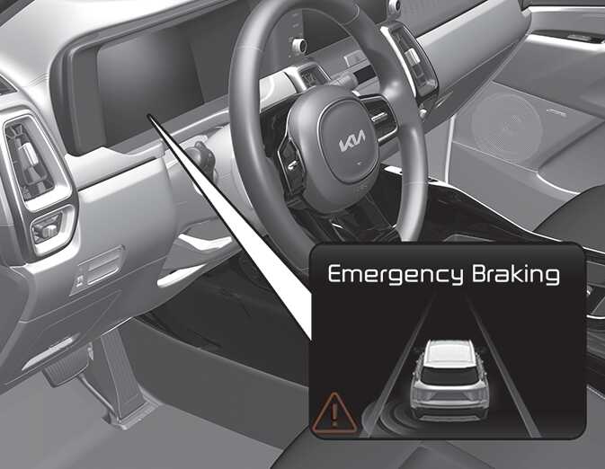 When the vehicle is stopped due to emergency braking, the 'Drive carefully' warning message will appear on the cluster.