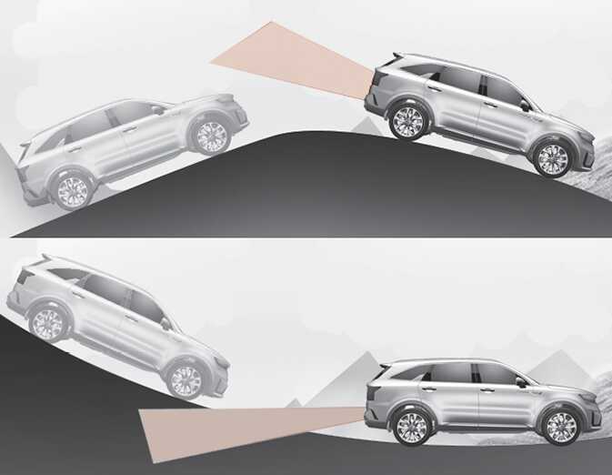 OMQ4H052619Blind-Spot Collision-Avoidance Assist may not operate properly when driving on a slope. The function may not detect the vehicle in the next lane or may incorrectly detect the ground or structure.