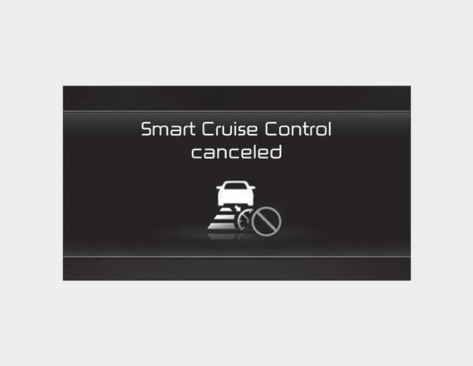 If the function is temporarily canceled automatically, the 'Smart Cruise Control canceled' warning message will appear on the cluster, and an audible warning will sound to warn the driver.