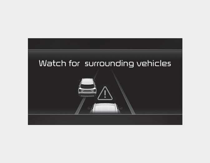 In the following situation, the 'Watch for surrounding vehicles' warning message will appear on the cluster, and an audible warning will sound to warn the driver of road conditions ahead.
