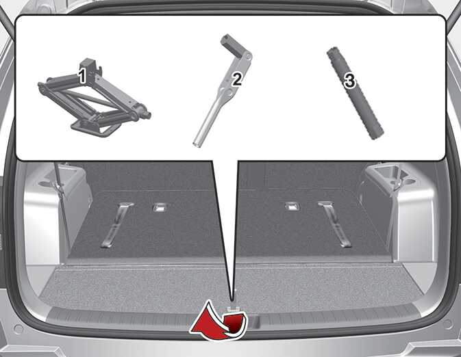 The jack, jack handle, wheel lug nut wrench are stored in the luggage compartment.