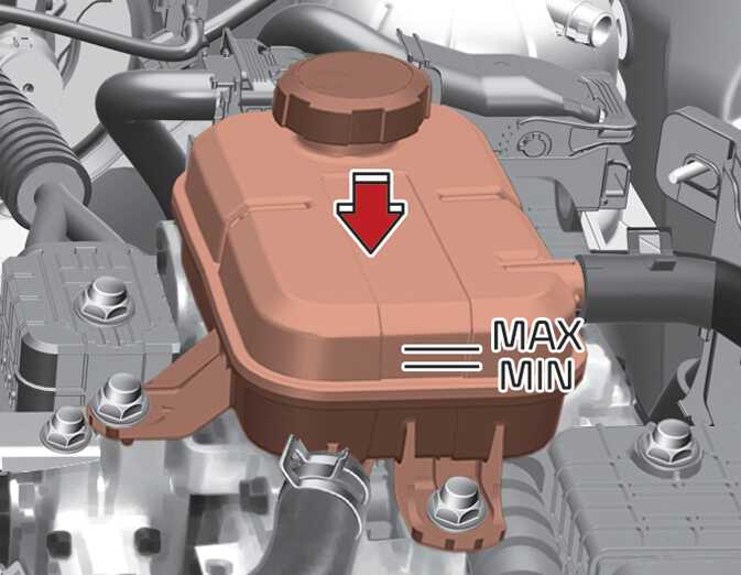 If the coolant level is low, add enough specified coolant to provide protection against freezing and corrosion. Bring the level to MAX, but do not overfill.