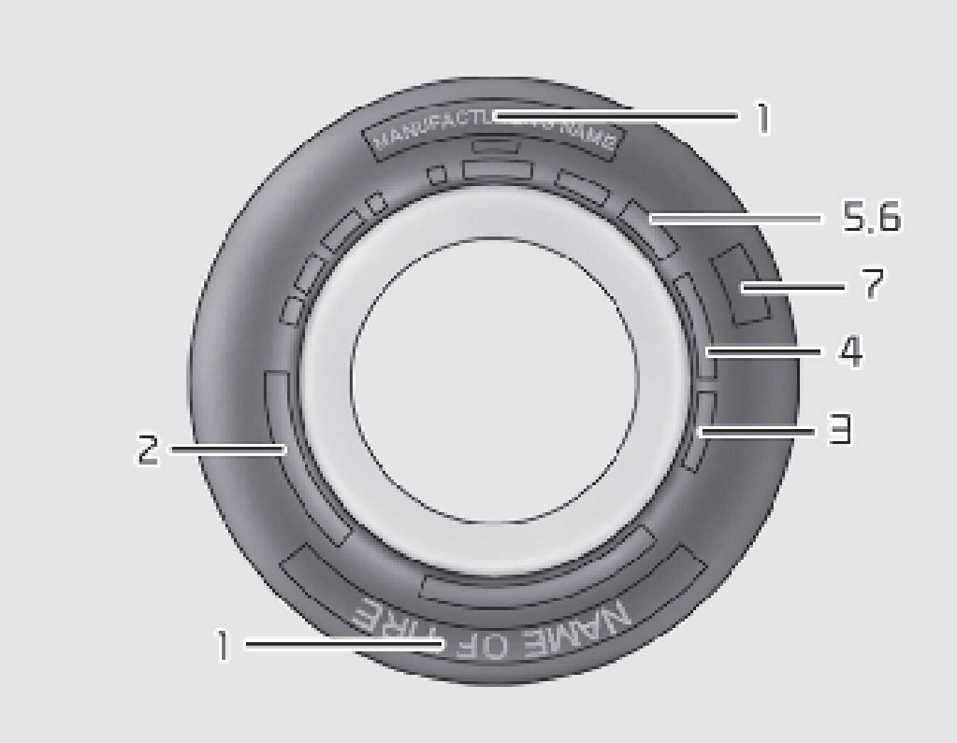 This information identifies and describes the fundamental characteristics of the tire and also provides the Tire Identification Number (TIN) for safety standard certification.